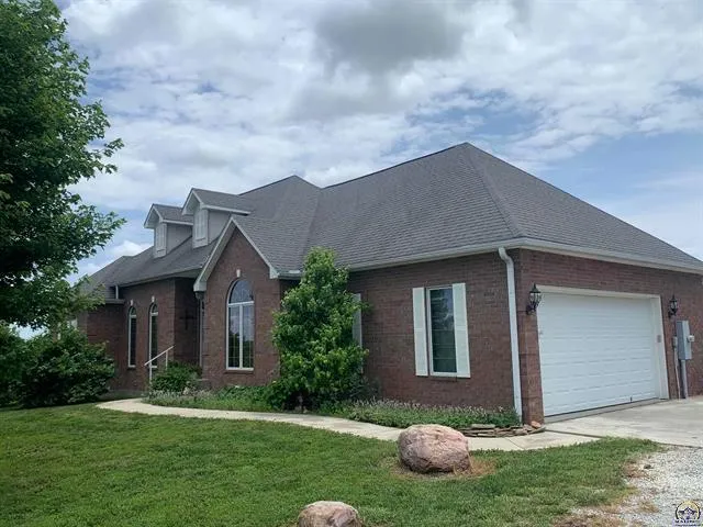 Spectacular custom built, one owner all brick walk-out rancher on 4.7+ acres on paved road adjacent to LaMont Hill Golf Resort and minutes from Pomona Lake Park. Features gleaming hardwood floors, coiffured ceilings, large entry, formal dining, kitchen with loads of counter space and breakfast nook. Formal living area with open lit oak staircase. Main bedroom suite with dbl vanity, soaking tub,standup shower & extra lg closet. Two other bedrooms on main flr w/dbl closet and hall bath. Full partial finished walkout basement has extra large family room, spacious bath and guest bedroom w/full window. Nice size storage area plus 15 x 14 bonus/hobby room or future 5th bedroom. Relax on the covered back porch and enjoy the beautiful view. Heat pump FA/CA. Attached dbl garage & detached 30 x 40 workshop. K-12 Schools at Lyndon. Easy commute to KC, Lawrence or Topeka and only a few minutes to 3 large lakes. Don't build when you could buy the house that has it all! Call today.