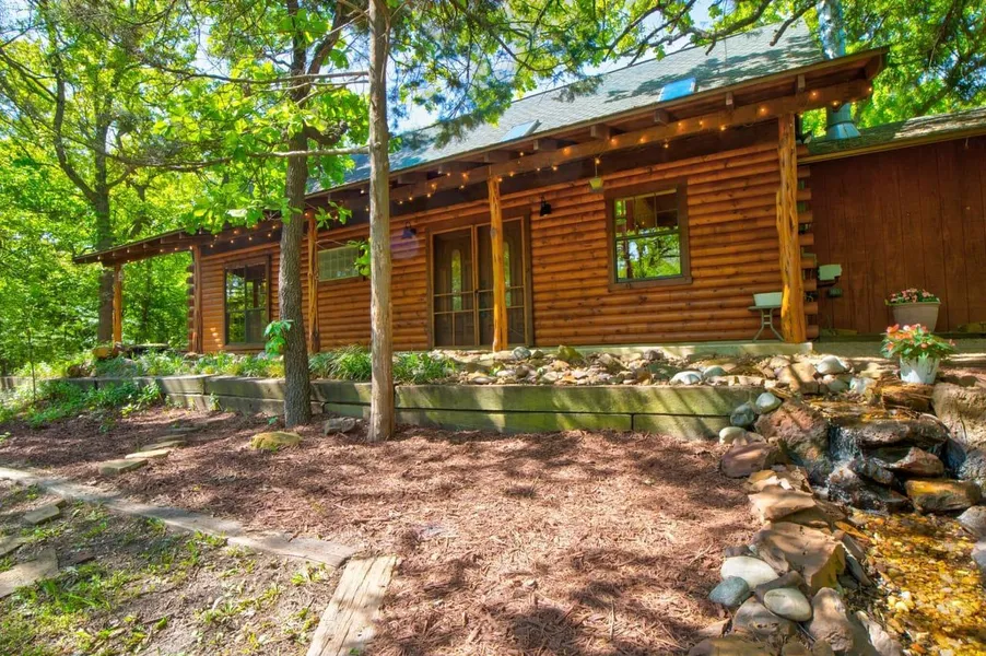 Come see the amazing privacy and seclusion this beautiful log cabin has to offer. Located at the end of a cul-de-sac, on 2 heavily treed acres, you will get lost in the beautiful oaks and have the feel of being on hundreds of acres by yourself. The home features an open floor plan with beautiful wood floors, granite countertops, updated bathrooms, a huge master bedroom with walk in closet and so much more. Come sit on the grand front porch and listen to the gorgeous water feature nestled up to it and forget all your worries.