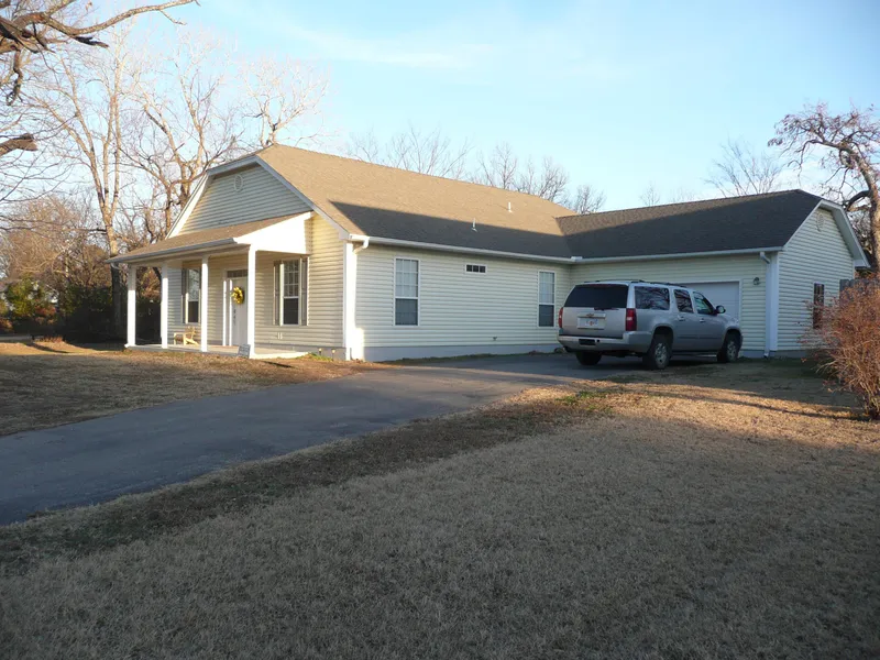 This beautiful 4 bedroom, one 1/2 story home is centrally located in Holdenville Oklahoma and move in ready. Complete remodel in 2006 including all interior walls, plumbing, electricity, roof, siding, insulation, central heat/air, windows and flooring. Large open living/dining/kitchen area. All kitchen appliances remain with the home. Attached double garage with remote. Three bedrooms are downstairs and one is upstairs. Termite and full home inspections have been completed within the year. Large back yard with privacy fence. This house is in a quiet neighborhood with very little traffic. Both full bathrooms are located downstairs. Walking distance to city pool, school, city park and shopping. A gas log fireplace is located in the large living area. The street is paved in front of this home with a concrete drive to the home.
