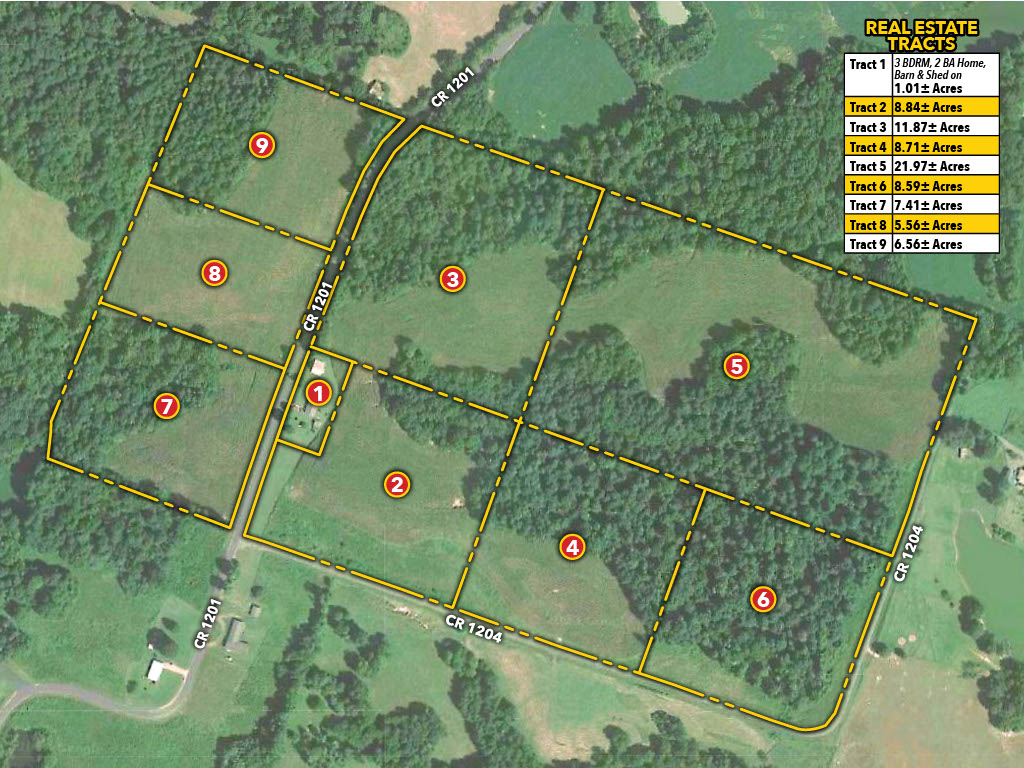 80+/- ACRES IN 9 TRACTS