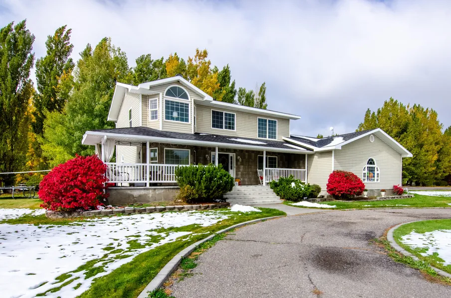 Beautiful, country home with the fabulous porch you've always wanted, on a large corner lot, surrounded by 1.5 acres! Sitting out on the porch watching the sun rise and set, and decorating for the next holiday! What could be better? Located within a few hours from beautiful Jackson Hole, WY & from famous Sun Valley, ID. For all your winter sporting and holiday fun. In the cute town of Rigby, ID, this is the perfect home for the holidays! Add to that, room for your animals and it is your perfect piece of paradise. This 1.5 acres in Rigby with irrigation is an amazing property! The main floor boasts a formal dining room, eat in kitchen, office, family room and more. The vaulted ceilings, hardwood floors, and granite countertops give it a luxurious feel. With 5 bedrooms, 3 & 3/4 bath, multiple living rooms, plus 2 den/office rooms (one has b...