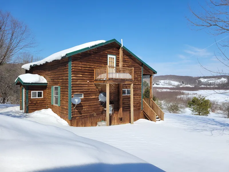 In the heart of the legendary Leatherstocking area of Central New York, a beautiful setting for this 2 story vacation getaway or year-round home overlooks this large property with multiple large natural ponds, woods and open meadows, providing ideal habitat for both deer, turkey and duck hunting all in one private location. The property has approx. 4575 feet of road frontage on two town maintained year-round roads. The main house is a Cape Cod style, 2-story home with full utilities, built in 2003. It features 1488+/- square feet with 1 bedroom, 2 loft sleeping areas on the second floor and a full bathroom, along with hardwood floors and an open floor plan with the kitchen, dining and living room. There is a wood stove for extra cozy heat and sliding doors that lead to a large deck off the lower level, perfect for enjoying the scenic views of your private sanctuary. There is a nice two-c...