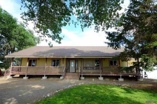 Beautiful must see horse property with 17 acres in alfalfa/grass mix. 1868 sq. ft. Ranch style home with attached 2 car garage. This 3 bedroom 2 bath home with formal dinning room, family room, kitchen with pantry and breakfast bar, master bedroom and master bath w/Jacuzzi tub, separate shower w/2 heads, and covered patio off living room. Kitchen has cherry cabinets. Property is fully fenced with 170'x 250' roping arena, 90' round pen with two smaller pens. Fully fenced steer pen with feed bunk, loading chute. Two stall horse barn (autographed by Bob Tallman), 2 storage sheds, pump house, dog kennel with attached storage. On the 17 acres there is water rights permit for 70 AFA (=acre feet annually)