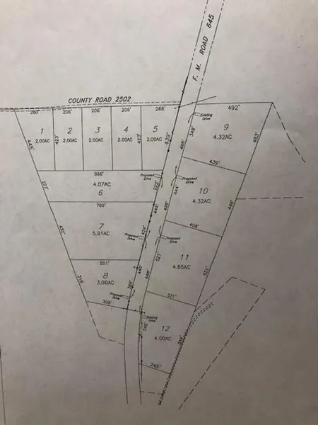 Research Parcel InformationTake Hwy 287 to Spur 324 to your left and travel to Tennessee Colony. At five way, take FM 645 North. Travel approx. 1/4 miles and turn left on ACR 2502. See survey map for each lot's location.