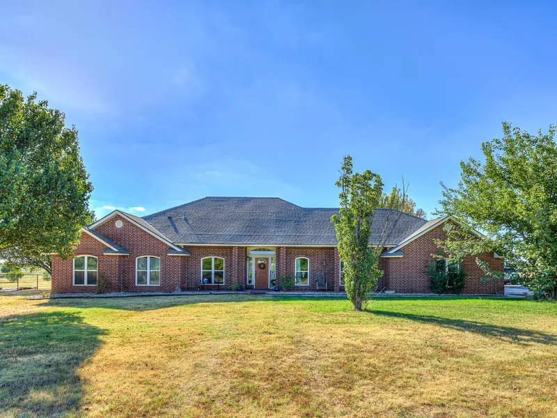 An oasis with functionality. This home with two master suites sits on a well cared for 40 acres with pipe and cable fence surrounding most of it including the cross fence. The home has seen many significant and elaborate updates since its original build including all new windows, a complete kitchen update with granite countertops in 2013, 2 wood burning stoves a new master bath in 2021 and more! The 3 car garage also offers a storage room. Two shops sit on the property a 40x30 & 40x20. The larger featuring electric, automatic door, and concrete floor. The smaller shop has an RV hookup The cloud pool resurfaced in 2018 is a relaxing place with a view to dream about with the hot tub and firepit sharing the same view. There are separate utilities for the barn both water and electric and an additional water meter in the pasture used for livestock. A sleek and delightful place to live. Approx 3/4 mile from the I-35 travel times to OKC (1 hr) or Dallas (2hrs). The list goes on & on, come see.