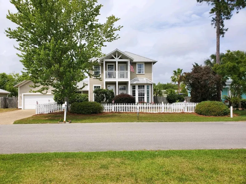 Less than a mile to the beach, approximately 4 miles to Pier Park and less than half a mile to the senior center. This home features a beautiful garden and back yard with irrigation. Wonderful wood trellis, covered with flowers and a 4 way entry through it. Nice backyard and in-ground Pool for those hot summer days. New white-washed pine floors on stairway and in upstairs bedrooms.