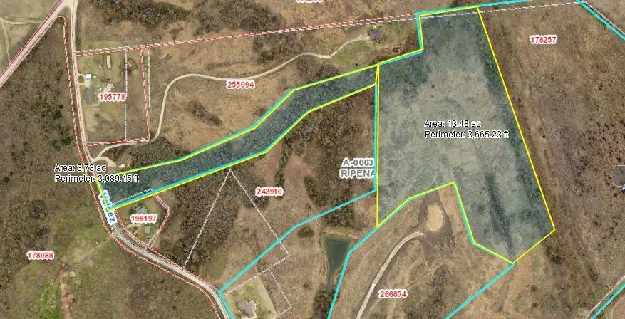 APPROXIMATELY 40 ACRES OF LAND WITH BOTH OPEN AND WOODED AREAS. ELEVATION CHANGES AND A SEASONAL CREEK. STUNNING VIEWS OVERLOOKING THE TRINITY RIVER VALLEY EAST OF ENNIS TEXAS.