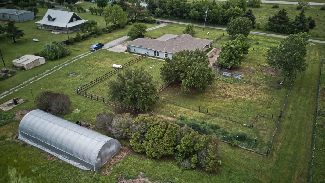 The real magic of this property, however, lies in the land itself. Designed as a permaculture homestead, the property has been thoughtfully developed to support sustainable, regenerative agriculture. A small ebb and flow hydroponic garden system is in the west garden, utilizing a fish tank for the nutrient dense water source. Just past the backyard enclosure is a large 20x60 hoop house, offering an extended growing season for vegetables, herbs, and flowers. Two separate equipment sheds provide ample storage for tools, feed, and machinery, keeping your operations organized and your tools close at hand.