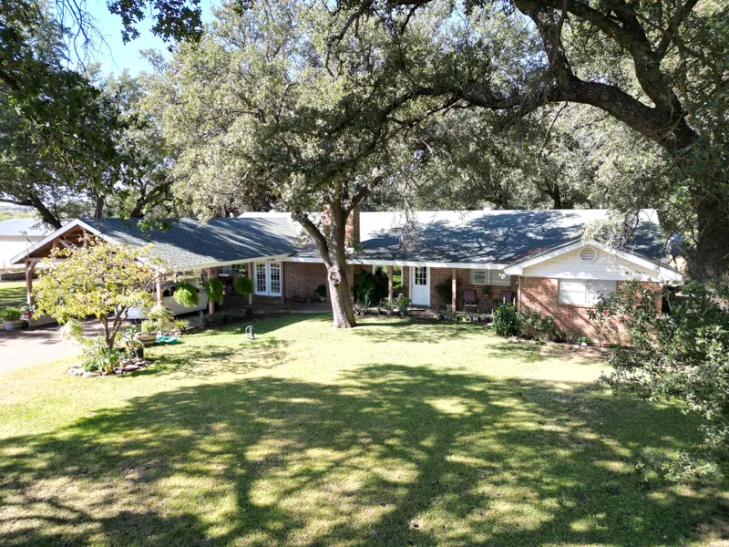 106+/- acres with Ranch Style brick home. 3 bedrooms- 2 bathrooms with over 2,200 square feet of living space. Many custom upgrades such as native pecan wood cabinets that were harvested from the ranch. Variable speed TRANE air conditioning. Custom bathrooms with modern features. Additionally, there is a 3rd bathroom with shower that is wheelchair accessible. Backup power system that runs off propane and could provide power to the house for many weeks in emergency situations. 1,000 gallons of propane storage. Wood burning fireplace insert. Solar powered water well provides water to the sprinkler system in the yard as well as the cattle pens. 50x40 barn with concrete floor complete with tractor. Remote electric entrance gate. New Survey. The land is totally fenced and cross-fenced. Gently rolling terrain with over a mile of access to Hords Creek meanders through the full length of the ran...