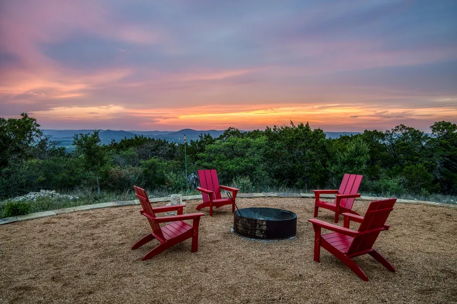 THE OVERLOOK DECK. Carefully designed overlook deck from the Cook House provides a birds-eye view of an exceptional spread of Texas Hill Country acreage and mountainscapes. This roof-top level deck gives a higher vantage point to unobstructed views straight into the horizon...and WOW! Simply breath-taking. From sipping your morning coffee and watching the sunrise to hosting a sunset dinner against the backdrop of a picturesque landscape, this elevated open deck creates a stunning outdoor space that blends in seamlessly.
