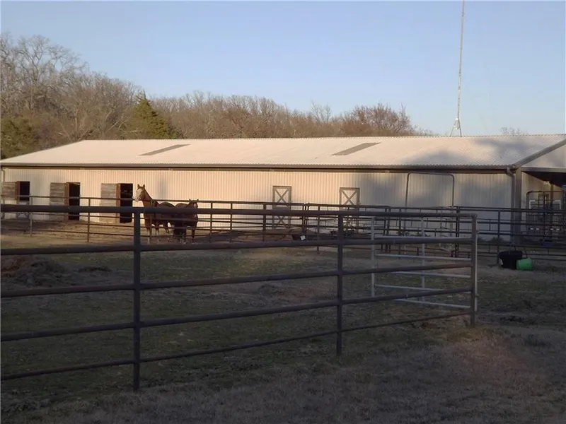 57+ acre ranch with 2 homes - a 3/2 doublewide plus a 2/2 singlewide mobile home plus garage/shop building. Currently producing income as Black Star Farm Horse Boarding featuring a 2800 sqft stable with 10 stalls, office and restroom. Fenced and cross-fenced into 5 sections. Three ponds, 3 loafing sheds. Pipe fencing around corrals and round pens. Mostly pasture with some woods at back of property.