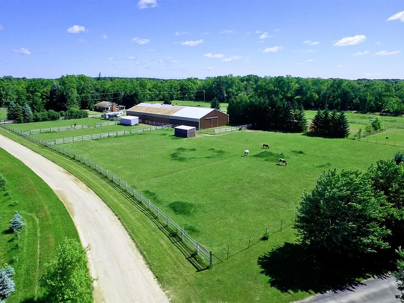 Welcome to 7950 Trotters Lane! This fully appointed Washtenaw County horse farm boasts a 60x150 indoor arena, 2 barns with 16 stalls and a heated observation room. Exterior features include 7 pastures each with a run-in-shed, 80x180 outdoor arena, 2nd barn with equipment and hay storage, plentiful trailer parking and 10 acres. The home features 2 bedrooms, 2 full bathrooms, spacious kitchen and a finished sun room. Highlights also include a partially finished basement, entry level mudroom / laundry and a 2 car attached garage. Excellent location in Webster Twp (Dexter Schools) across the street from Independence Lake Park and a couple minutes from US-23.
