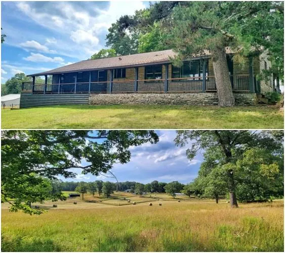 There are also fruit trees, a fenced in backyard, full length front porch, and hardwood floors throughout. The property is perimeter fenced, with black pipe fencing by the house, woven wire with barbed top, and 5 strand barbed. Multiple frost-free hydrants. The land lays very nice with rolling hills, about 75% is open with 35 acres in pasture, with the remaining 15 acres in woods with riding trails.