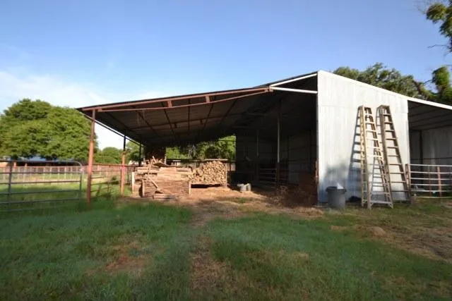 In addition to all of the before mentioned outbuildings, another metal sided building is located on the property and is a perfect place for boat and/or equipment parking. Farm equipment and supply storage is another optional use. A couple of horse runs are located by this barn too.