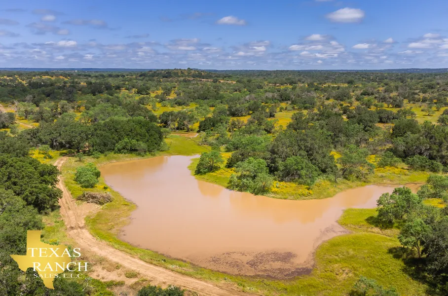 The ranch is named for its distinctive horseshoe-shaped pond, which is fed by approximately 2,000 feet of wet-weather runoff from Pecan Creek. In addition to the existing pond, the landscape offers several natural draws that could be ideal for building additional water features.