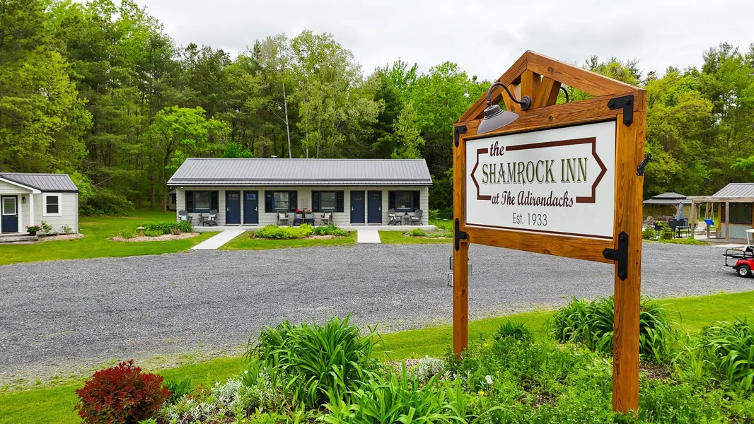 Nestled in the Adirondacks just minutes from Lake Champlain & the Ausable River, this quaint Inn sits on over 15 acres! Expand business with additional cabins or campsites, build a secluded home (or 2) or enjoy the woods & privacy! The Shamrock Inn most recently underwent major renovations in 2020. The owners have built a successful business with many repeat guests by providing welcoming hospitality, focusing on attention to detail. Guests enjoy the outdoor fire pit, grill, gazebo, horseshoes, corn-hole, picnic table, and large covered patio. Private RV spot on North Side of property offers a ready site for a camper with septic, water line & electric entrance. Sale includes all existing real estate, business & furniture/furnishings in all units. Excluded are items in house, office, screen porch & gazebo. House features an open & bright living space. Quartz counters, stainless-steel appliances & custom kitchen cabinets, recessed lighting, laminate flooring, large laundry room to accommodate the flow of business. Living Room, primary bedroom & full bathroom, as well as an office space. Peaceful screen porch off the back of the house. House could easily be rented long or short-term for additional income. Southside features 4, three season cottages, 2 with kitchens. And two suites (each pair has 2 connecting rooms). Northside has 6 more units, 3 with kitchens. All units have been renovated & nicely decorated. This business is ready for you to just step into and hit the ground running. In the last 5 years, new well & 2 new septic systems, new on demand heaters in each of the south side units. Nearby attractions: Port Kent Beach, Lake Champlain, Ausable River, Ausable Chasm, Wickham Marsh Wildlife Management Area, Peru Boat Launch, 3 Golf Courses, SUNY Plattsburgh, Lake Placid, Whiteface Mountain Ski Resort, High Peaks region, hiking, fishing! Plattsburgh Airport PBG (15 mins), Burlington Airport BVT (1 Hour), Amtrak Station to Montreal & NYC (15 mins), I87 (3 miles