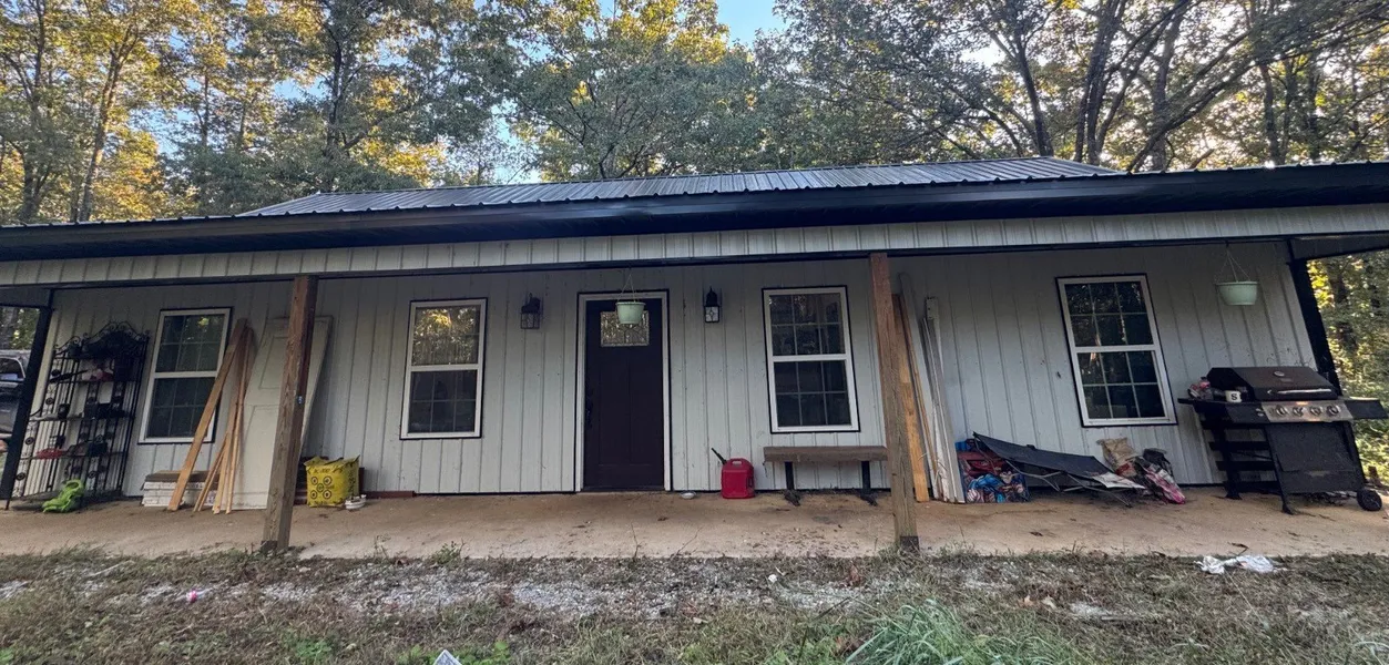 NEW PRICE! Reduced by $9,100!! Take a look at this beautiful home on 10 acres M/L! Tucked away in a private setting, you'll find this newer 3 bedroom, 2 bath metal home featuring 1,536 sq ft with a split floor plan. Kitchen, living room and dining room are open, maximizing the square footage. (Master bathroom needs some finish work but is plumbed and ready for custom touches). Home built in 2022, CH/A, slab foundation, vaulted ceiling, rural water, septic, 12x20 outbuilding. (Washer, Dryer and Refrigerator negotiable)