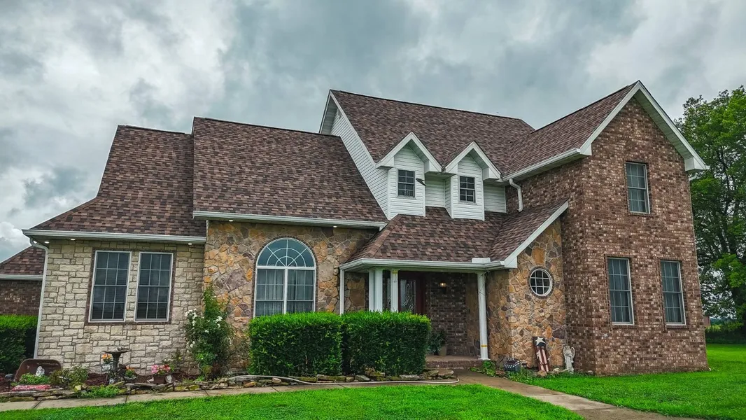 Discover this beautiful 4,600 square foot home on 8 +/- acres in the countryside of Dallas County featuring vast views, great curb appeal, and a great location. Past the pipe entrance towards the back of the fenced acreage, you will enter a custom-built brick home with a brand new roof and gutters, five bedrooms, two living spaces, two kitchens, four full bathrooms, and a two-car attached garage. The heart of the house is the main level living room, featuring a gas fireplace, porch, and tall ceilings that open to the kitchen and dining room, creating a great area for entertainment and cozy evenings inside. If you are accommodating guests, there is ample space downstairs, featuring a separate kitchen, dining room, living area, washroom, and a large non-conforming bedroom (no window) with a handicap-accessible full bathroom. The downstairs living area has a separate entrance with parking that gives it the potential for rental income. The primary bedroom on the main level features a bathtub, a shower, a spacious walk-in closet, and a private porch. When you step outside, you are greeted with incredible views of the surrounding farmland and the peaceful quietness that country living offers. Bring your pets and livestock, as there is plenty of room, and the property is fenced. Located off Blacktop Road, you are in an ideal location near Lebanon, Buffalo, and I-44, providing easy access to all your in-town needs. Do not hesitate to call The Utecht Land Team with any questions and to schedule a private showing.
