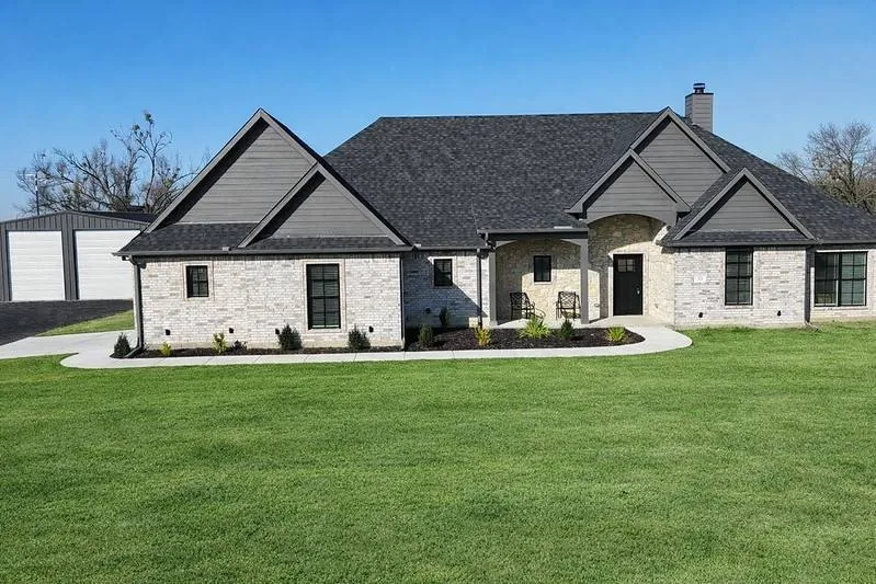 Welcome to this custom-built, move-in-ready home located outside the city limits on a beautiful 1-acre corner lot in Collinsville. Enjoy the freedom of country living just minutes from town, with no city restrictions. As you drive up, you'll be greeted by the home's beautiful exterior design, outdoor accent lighting, and a circular crushed asphalt driveway. The property includes an oversized attached 2-car garage and a 30x40 shop with two 12-ft roll-up doors and a concrete floor-perfect for projects or storage. Inside, the home features 3 bedrooms, 2.5 baths, and a bright open floor plan with 9-foot ceilings throughout. A stunning brick fireplace anchors the living space-wood-burning and plumbed for gas. The kitchen boasts quartzite countertops, a large island with sink, gas range, and a large pantry that doubles as a wine and coffee bar. The private primary suite is oversized, with plen...