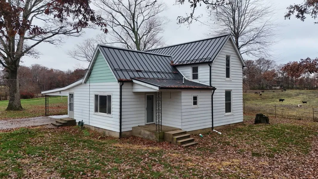 Charming 1880s farmhouse sitting on 1 acre just outside Albion, Illinois! This 3-4 bedroom, 2 bath home blends classic character with important updates, including a new roof. The property offers a peaceful country setting with mature oak trees, a blackberry patch, and a fenced goat/chicken pen-perfect for anyone wanting a small hobby farm or a quieter lifestyle. Plenty of space inside and out with flexible room options to fit your needs. Enjoy country living with convenience close to town!
