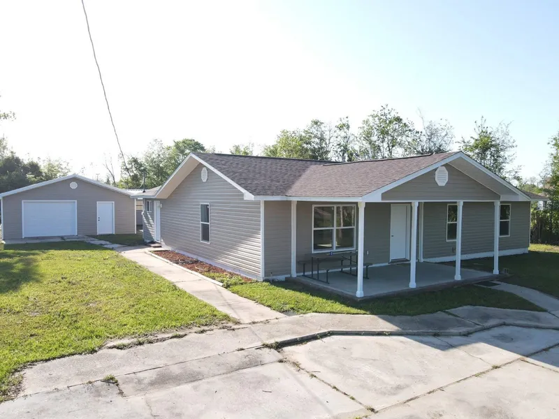 This beautiful home in Altha,FL has just had a major facelift! This 3BR/2BA, 1628sf heated home was built in 1988 and has solid bones. Pretty much everything in this house is new from the new roof down. Lot is approximately 117' X 210' (0.5 ac) The kitchen, dining and living area truly make this a Great Room. Plenty big but not too big. Home: All sheetrock replaced All new flooring--bedrooms have carpet and the rest of the house is tiled. All new kitchen cabinets, island, countertops and fixtures All new appliances and water heater All new bathroom fixtures and 2 beautiful tiled showers All new light fixtures. All new doors Big utility room Mudroom,storage or craft room Detached garage, storage area and office: 1120sf heated New sheetrock ceilings, walls and lighting New garage and entry doors Garage is 40'X24' 16'X10' office or crafts room New mini split ins...