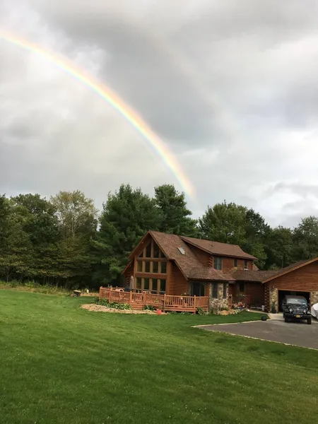 It is a 3 bedroom. 2 bathroom two story "Beaver Mountain" log home built in 2016. There is a generator that kicks on should the power fail. Full walk out basement, Pellet stove to supplement the LP gas furnace w/ forced hot air gas cooktop & dryer Electric oven. On 6.95 acres