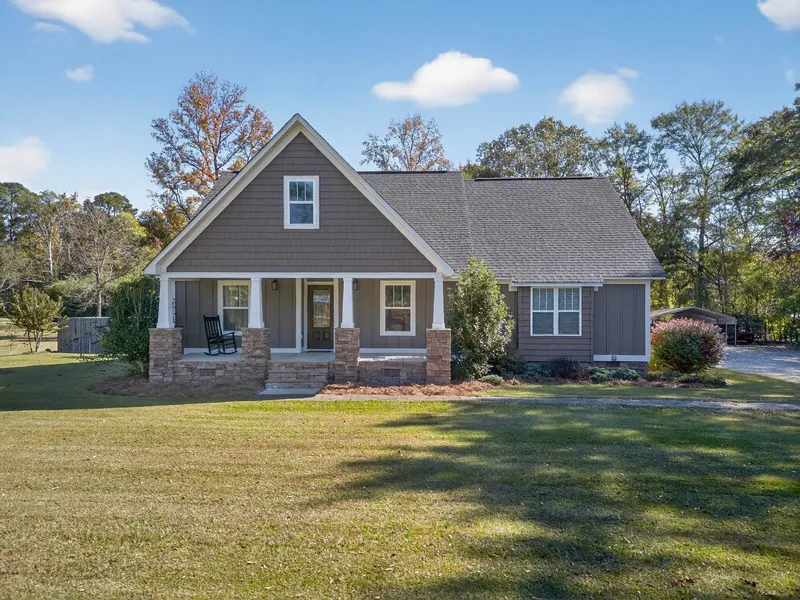 NEW LISTING! First time on the market, homebuilders/real estate brokers custom built personal home. This custom craftsman 1&1/2 story home features an open living/dining/breakfast/kitchen area perfect for entertaining. Covered front and back porches are perfect for enjoying the outdoors. No expense was spared in this gorgeous home including custom shaker kitchen cabinets that are full height, soft close and have pull out drawers with granite tops. Deep stainless sink, gas cooking, pull out garbage drawer, built in microwave niche and tile backsplash are also present. There is a large walk in panty and nearby spacious laundry/mudroom. On the first level you will find a half bath for guests and 2 primary bedrooms both with walk in closets and soaking tubs. The hardwood and tile floors make is perfect for kids and pets. Upstairs there are 2 extra bedrooms with a large hall bathroom with dou...