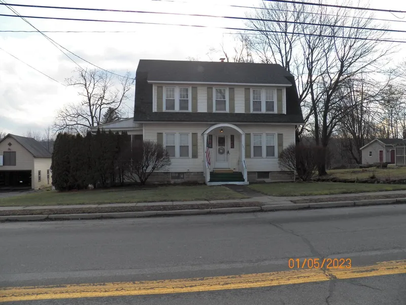 This home has so many possibilities, located in a small Village in the Historic Mohawk Valley, Central Montgomery Co. The home features 3 enclosed porches- 3 bedtooms-( one features a gas fired fireplace.) full bath up and a 1/4 bath down. Formal Dining Room- Large Living Room (12 x 26.5'.) this room has a gas fireplace as well. There is an enclosed porch off the Living Room. Center Hall Entrance- The home is furnished with lovely Antique Furniture. The full basement has a Laundry area and access to a one stall garage. 2 more Enclosed Porches with great Southern Exposure. There is a 2 Stall garage with storage detached from the house. 88.6' Frontage with a 351' deep lot that lends to so many possibilities. Landscaped and so well kept. Ready to step in and set up housekeeping.