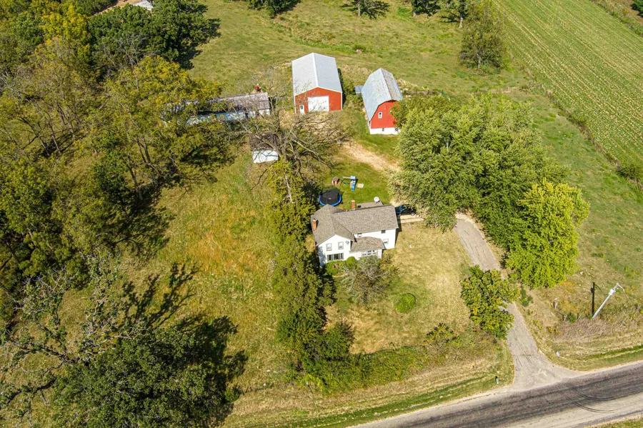 This 2-story farm house sits on 14.82 acres. 3 bedrooms, 2 full baths Living room with dining area, kitchen and an office. Roof 10 yrs. Furnace 8 ys. windows and siding 10 yrs. Electric 200 amp Septic 10 ys. Propane tank owned A large 2 story red barn, pole barn 64 x 36 cement floor, plus 2 other barns. New fence Water Supply and Electric out to the pole shed Great place to have livestock and horses. Great place in the country but close to town. Also under MLS 202405157 - Farm Possible the Seller can finance to qualified Buyers