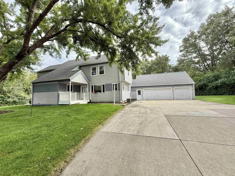 This stunning three-story home offers over 4,000 square feet of beautifully designed living space, nestled on a 1.43-acre private, wooded lot. The main floor features both a formal living room and formal dining room, perfect for entertaining. The updated eat-in kitchen (2016) boasts white soft-close cabinetry with rollouts, a double pantry, granite countertops, tile backsplash, under-cabinet lighting, and black stainless steel appliances. Enjoy the warmth of the family room with a gas fireplace, built-in bookcases, and sliders leading out to a deck with hot tub. A main-floor bedroom with a full bath, plus an additional half bath, add convenience and flexibility. Upstairs, you’ll find four spacious bedrooms and two full baths, including a luxurious primary suite with a vaulted ceiling, large walk-in closet, and private bath featuring a double-bowl vanity, Jacuzzi tub, and separate shower. The walk-out lower level expands your living space with a second family room, bonus room, and another full bath—ideal for guests, recreation, or home office space. Step outside to your private oasis featuring a 15’ x 30’ heated in-ground pool, fenced yard, and plenty of room to relax or entertain. 3.5 car attached garage + 1 car detached with separate entrance to an enclosed loft, which would a great space for a studio. Peace of mind comes with newer roof, siding, gutters, and windows. This home combines space, updates, and outdoor enjoyment—all in a serene setting. *Some photos are virtually staged