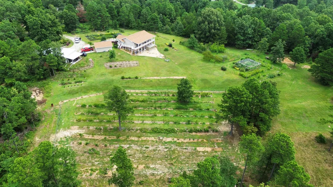 The property includes gardens, vineyards, and a variety of berry bushes, including strawberries, currants, elderberries, blueberries, blackberries, and raspberries. Enjoy fresh produce from your peach, pear, and apple trees. The greenhouse, equipped with auto timers, ensures your plants thrive year-round.