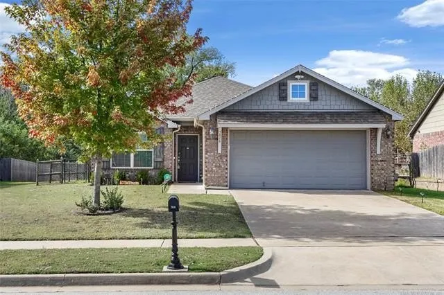 SINGLE LEVEL ON GREEN BELT LOT! 3 bedroom 2 bath home in one of Broken Arrow's premier neighborhoods, Stone Horse. Playground park, neighborhood pool, and this absolutely beautiful home surrounded by trees and close to many of south BA's best shopping and entertainment areas! Granite kitchen, with breakfast nook, pantry, abundant cabinetry and a long bar for extra entertaining space. Sunny and light living room with wood look tile and back patio with pergola, backing up to beautiful treed greenbelt. Primary suite is split from other bedrooms, offering full private bath, double sinks and walk in closet. Neutral palette can accomodate a modern or traditional style of decor. Additional security featuring audio/video at both front and patio doors, as well as motion sensor lighting with audio/video over garage door. Energy saving whole home LED lighting. Beautiful backyard with extended patio with pergola and greenbelt view. Don't miss out on this great value! New price! Call today for a private tour of this incredible home.