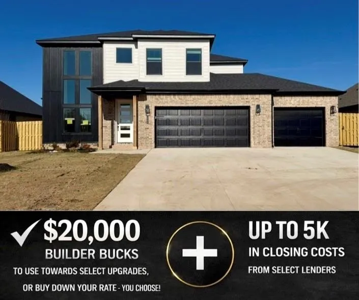 Welcome to Hillcrest in Cave Springs — where peaceful surroundings meet convenience. This new construction offers 4 spacious bedrooms, office, 2.5 baths, and 2,630 sq ft of thoughtfully designed living space. Nestled on a .19-acre lot, you’ll enjoy peaceful surroundings while being just minutes from all that Northwest Arkansas has to offer. The open-concept main floor features wood flooring, natural light, and fireplace in the living room. The primary suite includes a soaking tub, walk-in shower, and walk-in closet. Upstairs features three additional bedrooms and a full bath. For a limited time, Builder Incentives: $20,000 Builder Bucks to use towards select upgrades, appliances, or buy down your rate – you choose! Plus up to 5K from select lenders. For a total of up to 25K with lender incentives! Fence, blinds, and gutters are all included.
