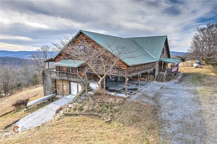One of a kind cedar & stone home with incredible view. The main house is very open with wood vaulted ceiling and windows floor to ceiling. The guest house is connected by a breezeway and it has kitchen, eating area, 2 bedrooms and 1 1/2 baths. One car garage/workshop is heated & cooled 775 sq ft but not included in the square footage. The guest house has rented for $1,200 monthly and $169 on AIRBNB. Updates include: enclosing breakfast area into bedroom, cabinets in living area, roof, downstairs bathroom and utility room, total kitchen with new appliances and quartz countertops, tankless hot water heater, new supports under house & top windows sealed. With acceptable offer, refrigerators in main house and guest house will convey. Washer/Dryer in guest house will convey. You will feel like you're on vaction with wrap around deck and view.