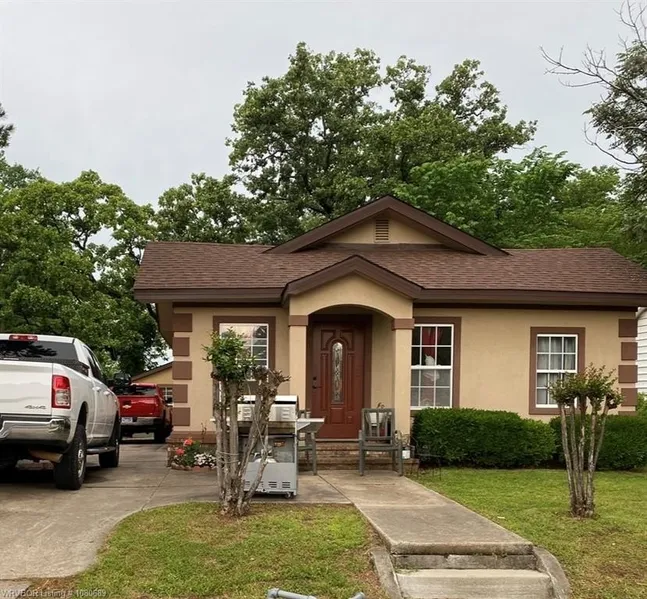 Nicely remodeled 3BR, 2bath stucco/brick home, plus 1BR apartment (384SF) with kitchen and bath. New roof and vinyl windows installed in 2019, central H&A in 2023, water heater in 2022. Also updated plumbing, electric, insulation, fence, gutters, flooring, paint, kitchen and bathrooms. Part of the back porch was enclosed to add the second bathroom and laundry room. The garage was converted into the 1BR apartment, a dual window unit will be installed for heating and cooling. The tvs in the kitchen and BR will stay, also the appliances in the apartment. Formal dining room, plenty of parking space, close to schools, shopping, university and park