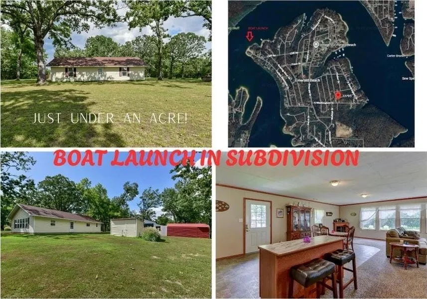 Spacious 2 Bedroom Home in Emerald Beach - Nearly an Acre Near the Lake! Welcome to your perfect lake getaway! This charming and spacious 2 bedroom, 1 bath home features an open floor plan, creating a warm and inviting space ideal for relaxing or entertaining. Nestled in the sought-after Emerald Beach community, it sits on nearly a flat acre—perfect for storing all your lake toys, RV, or adding a shop. Enjoy convenient access to the boat launch and parking area located within the subdivision. Whether you're looking for a weekend retreat or a full-time residence, you'll love being just a short drive from Eureka Springs, Roaring River State Park, and within day-trip distance to Branson or Northwest Arkansas. Don't miss out on this prime location with room to spread out and enjoy lake life!