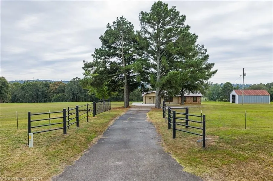 Welcome to 9643 Wire Rd in Mulberry, offering breathtaking views and 41.75 acres, with an available recent survey. This property is perfect for farming, raising livestock, or simply enjoying the serene country life scenery, while remaining only a short distance from city amenities and 2.2 miles from interstate access. The approximately 1,670 sqft home has been undergoing a remodel, providing the perfect opportunity to customize it to your exact specifications. The seller has already completed significant upgrades, including all new electrical and plumbing, all new duct work for the heat and air, installed Wi-Fi internet cables, hardwired smoke detectors, raised ceilings, new windows, batted and blown-in attic insulation, and enclosed the carport to expand the home's square footage as well as new concrete porch and parking areas. Additional enhancements include wiring for a kitchen island, a new metal roof installed in 2024, and a 1,000-gallon septic system with a new septic top, new leech lines, and accessible cleanout covers. A new water meter and additional water shutoffs have been installed, along with a new PEX water line from the meter to the home, a new custom steel main entry gate, a new west gate, and fencing around the property.
