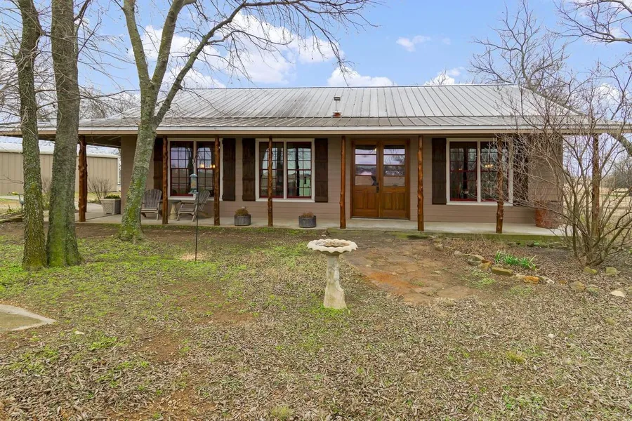 Enjoy country living with an easy commute to the D/FWMetroplex. This charming, move-in ready, 2-bedroom, 2 bath home sittingon 105 acres has it all. Lush pastureland, a creek, woods and 5 tanks with abarn and several additional outbuildings including 2 that could be used asstudios or home offices. There is even a storm shelter only feet from the house withbenches and a safety latch to prevent being locked inside.