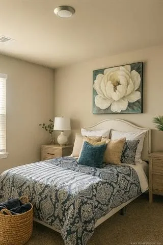The primary bedroom, located at the rear of the home for added privacy, offers a peaceful retreat with an ensuite bathroom that includes a large walk-in shower and a spacious walk-in closet. The three secondary bedrooms are positioned toward the front of the home, offering both privacy and easy access.