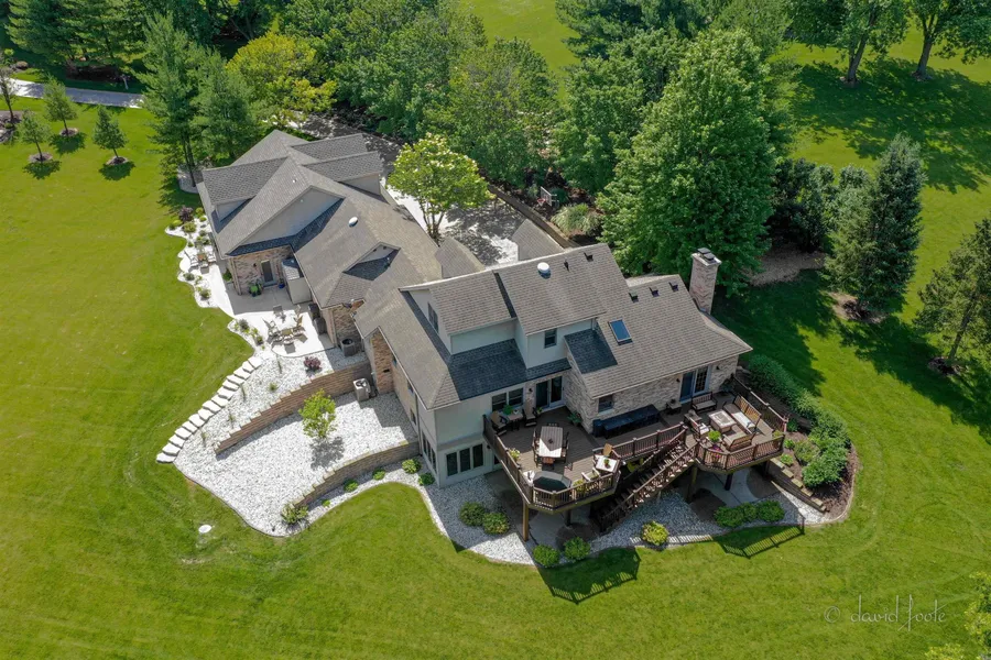 An incredibly unique find! Experience the utmost in luxury, privacy, and quality in a location just minutes from all the shopping, fine dining, and activities of Downtown Galena combined with the privacy, expanse, and scenic beauty of a setting offering a rural feel. Tucked at the end of a long private drive nestled amidst the trees 1.38 acres of park-like setting sits this dramatically-styled 4 bed/3.5 bath masterpiece custom-designed and built as a personal residence of the former owner of one of Galena's premier builders, Galena Hillside Homes, and featuring stunning architecture, incredible craftsmanship and design, high-end finish work, and a flair of rustic elegance all combined with manicured grounds, elevated views, internal trails, expansive garage totaling 4+ car capacity, incredible outdoor living areas, and so much more. Stunning two story foyer with grand custom staircase by Gary David Woodworks greets you upon entry, and opens to sprawling main level featuring generous living room with wood clad cathedral ceilings and floor-to-ceiling brick surround gas fireplace, modern kitchen with gorgeous custom cabinetry, a mix of granite and Corian counters, eat-at center island, large pantry, glass doored built-in hutch, and eat-in breakfast nook that feeds to expansive rear composite deck with breathtaking views of the treed backdrop and surrounding property, formal dining room with ample space to entertain, incredible laundry room with upper and lower cabinetry, sink, and folding counter, convenient powder room, and spacious master suite with walk-in closet and spa-like master bath with updated soaking tub and luxurious full tile surround separate shower. Ascend to the upper level to find two comfortable guest bedrooms and a nicely appointed full bath with tub/shower combo and tile accent surround. Retreat to the finished walk-out lower to find a haven for recreation, entertainment and relaxation that houses sweeping family room with custom wall-to-wall and floor-to-ceiling limestone surround gas fireplace and wet bar, full fitness room, additional guest bedroom, open office area, and utility room with storage and secondary laundry area. Huge, heated 4+ car garage that has plenty of room for vehicles, toys, workshop and more, and even has a semi-finished loft area above that is heated, cooled and plumbed for another full bath for future expansion. Enjoy the outdoors and beautiful natural scenery from several outdoor areas that include the aforementioned main level deck with natural gas pipe for grill and firepit, warm and inviting covered front porch, generous rear concrete patio, and private patio off garage rear. Exterior is highlighted by extensive landscaping, limestone stairs to rear yard, and amazing stamped and exposed aggregate driveway. Picturesque acreage contains a nice mixture of treed and open grounds. Truly a one-of-a-kind Galena experience. Square footage is approximate. *One listing agent (Jonathan Miller) is related to sellers.