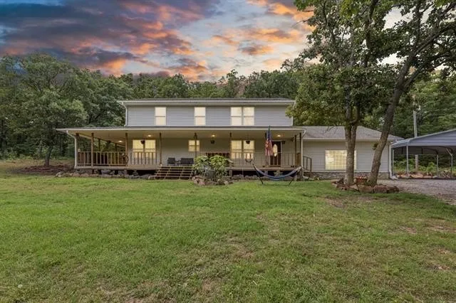 2-Story FARMHOUSE on 10 ACRES – JENNINGS, OK | PAWNEE COUNTY Welcome to your dream homestead! This beautifully updated 3-bed, 2.5-bath farmhouse over 3,000 sq ft (CH) of living space on 10 acres m/l in Pawnee County. Surrounded by woods, a CREEK, POND this property offers both comfort and country charm—perfect for livestock, hobby farming, or simply enjoying the peace of rural Oklahoma. This home has been updated with new vinyl plank flooring, fresh paint, new carpet in bedrooms, new vanities with granite countertops, gorgeous lighting and ceiling fans throughout and much more. LEVEL 1 – Primary bedroom w/large walk-in closet and large primary bath with double sinks, large soaker tub and separate shower, kitchen/dining room, living room, half bath, large bonus room off the living area currently being used as a bedroom, could be used as a den/game room, the utility room is in the area along with storage, the original plan was most likely a garage but made into climate controlled living space. LEVEL 2 – wide staircase, 2 large bedrooms both with large walk-in closets and full bathroom with combo tub/shower with double sink granite vanity. LAND is beautifully wooded with a creek that runs along the east side of the property, fully fenced for LIVESTOCK. Circular driveway newly resurfaced, New 30x 26 steel framed CARPORT, 10x12 storage SHED with new fence, POND. All new water well components, whole home Culligan filtration system/RO in house. Enjoy the wrap around covered porch. Nice paved road frontage. KEYSTONE LAKE approximately 20 minutes, approximately 35 minutes to Tulsa and Stillwater. Close to Hwy 412