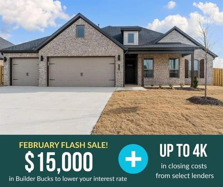 FLASH SALE: Contract in Feb and receive 15K in builder bucks and up to 4K from select lenders. Introducing the 2,282 plan this split layout features 4 bedrooms and 2.5 bathrooms. The primary suite is privately situated on one side of the home and offers a seamless flow from the bedroom to the bathroom, into the walk-in closet, and directly into the utility room. On the opposite side, three additional bedrooms share a full bath. At the center of the home, a vaulted living room opens to the kitchen and dining area. The living room showcases an electric fireplace, while the kitchen features beautiful quartz countertops throughout and a charming breakfast nook for casual dining. A convenient half bath is located just off the kitchen. Enjoy relaxing evenings on your covered front and back porches, with the backyard enclosed by a privacy fence. Plus a 3-car garage. Fence, blinds, and gutters a...