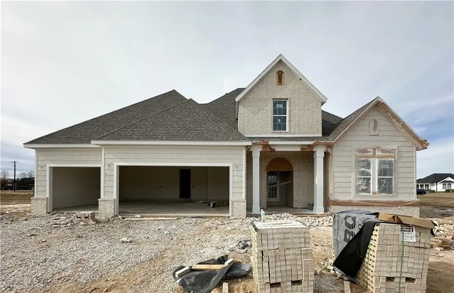 Welcome to County Line Square, a new Springdale community near Shaw Family Park with a pool and pavilion for residents. Step into the entry where a bedroom and full bathroom sit to the right, offering flexible space for guests or work. Continue into the main living area where the living room, kitchen, and dining space connect for easy everyday living. The living room features a fireplace with windows on each side overlooking the covered back patio, bringing in natural light. The kitchen includes a large island, quartz countertops, cabinets to the ceiling, GE Profile stainless steel appliances, and a pantry. Engineered hardwood floors run throughout the first floor. The primary suite features a vaulted ceiling and a bathroom with a double vanity and centered makeup vanity, a walk-in shower, and a walk-in closet that connects to the laundry room. A mudroom provides access to the 3-car garage. Upstairs you'll find 2 additional bedrooms and a full bathroom. A fence, blinds, and gutters are included. *Agent Owned*