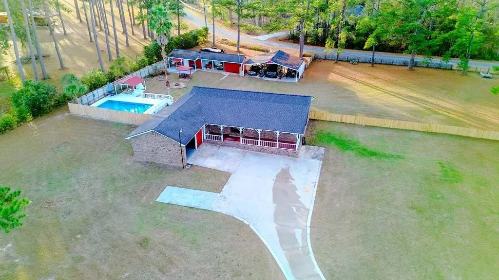 Check out this well maintained 3 bed 2 bath brick ranch style home on 1.57 acres! This home is located just 10 minutes from Valdosta! Tucked away on a huge lot in a quiet subdivision, this property is full of features. Some of these include: an in ground swimming pool, a work shop and pole barn, fenced in back yard, long drive way with adequate parking, 2 car garage, and so much more! The interior of the home features new paint throughout and newer LVP flooring! The kitchen has been updated with wood cabinets and stainless steel appliances. The primary suite has double vanities, tub shower combo, and a walk in closet. Come soak up the South GA sun on the pool deck or relax on the huge front or rear porch! This property has it all and is ready for you to call it HOME! Come check it out for yourself, this one won't last long!