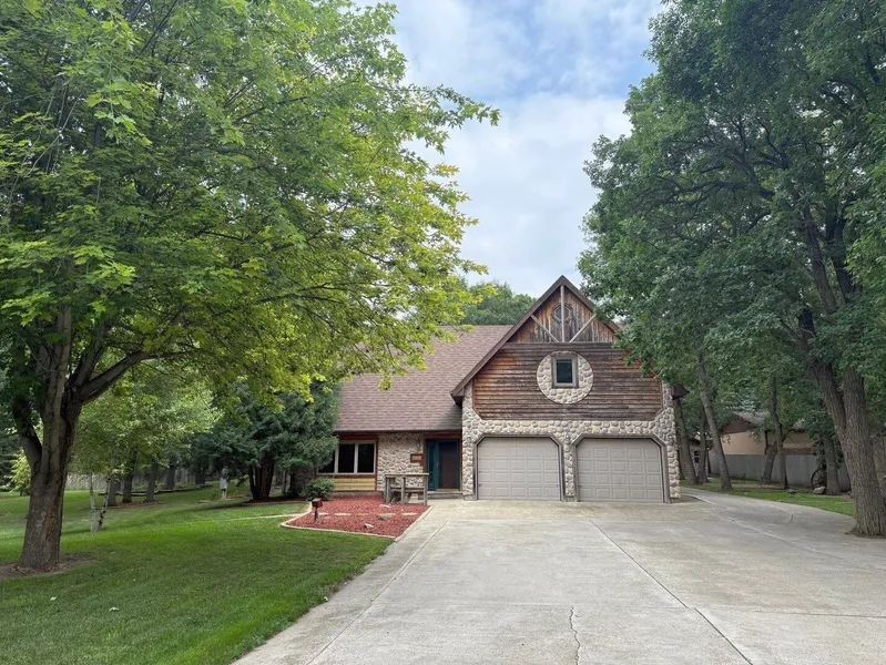 Nestled on a beautifully wooded 1.07-acre lot near Woodland Resort, this unique 1.5-story home offers a rare blend of privacy, space, and versatility. Step inside to find a warm and inviting main floor featuring a spacious living room, dedicated dining area, and an impressive kitchen with oak cabinetry, granite countertops, stainless steel appliances, a center island with seating, and a pantry. Main floor laundry and a half bath add convenience, while the cozy family room with a gas fireplace makes the perfect gathering space. Upstairs, you'll discover four generously sized bedrooms and two full bathrooms, including a luxurious master ensuite with ample closet space and built-in storage throughout. A beautifully carved wood banister adds timeless charm and character. The finished, heated two-stall garage is just the beginning of the property's extras. Outdoors, enjoy meticulously m...