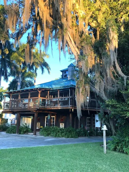 Lodged along the Barron River, nestled underneath two majestic banyan trees is one of beautiful Riverside Drive's premier homes, a one-of-a-kind custom built with Douglas Fir and Cedar, harvested in the state of Oregon and transported by rail and truck to Everglades City. The home is two stories; upstairs has 2 bedrooms and 2 1/2 baths, great room, kitchen, laundry and wrap-around screened porch; downstairs is another bedroom, family room, full kitchen, laundry and open porch. The many windows allow for natural lighting and create a romantic glow throughout at twilight. This extraordinary home has Ed Kohler custom metalwork; mangrove handrails, fireplace screens, sea grape light fixtures and a pink spoonbill sculpture. There are handmade stained glass windows throughout the home and reclaimed Micanopy Heart Pine wide plank floors on the second floor including the stairwells. Relax on y...