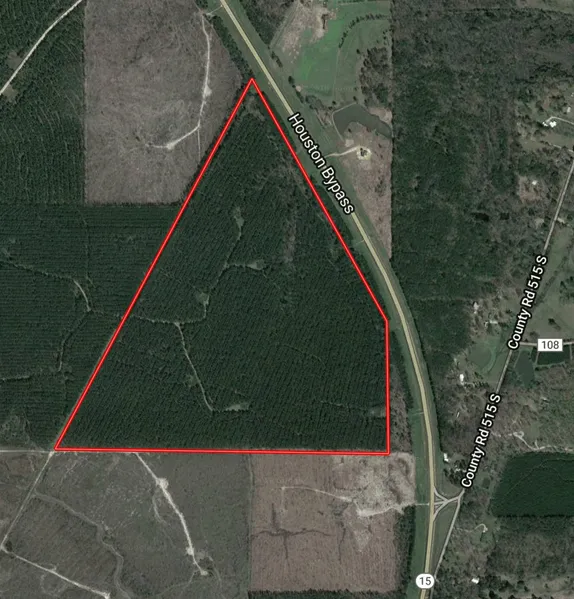 187.37 acres located in Section 18, T14S, R3E, Chickasaw County, MS with 2800 feet of frontage on Hwy. 15 (Houston Bypass). The property consists of 173 acres of twenty year pine plantation and eleven acres of hardwoods.