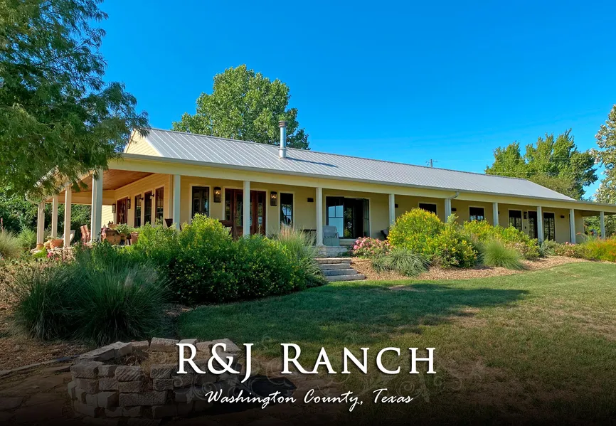 R & J Ranch is located at the back of an elegant country development, a 22+ acre property offering a private and peaceful haven away from the hustle of the big city. Take in the amazing long-distance views and rolling terrain from the expansive wrap around porch and enjoy nature at its purest. The 2900+/- SF custom one level home was totally renovated and additions built-out in 2013. It offers a warm and inviting design with soft colors, stained wood trim, beamed cathedral ceilings, Mesquite and slate flooring, and custom cabinetry throughout by Evans Cabinets. The living area, with walls of farmhouse windows lets the outdoors in. The custom kitchen and dining room offer great flow for family and friends. From the shiplap walls and wood-burning stone fireplace to the hand-picked slate slab countertops, this home is full of cozy yet sophisticated charm. For those that love to entertain, there is a separate prep/catering kitchen located off of the kitchen. Down the hall is the primary guest room with private bath and the third bedroom that has been built out into a double office space again with custom cabinetry by Evans. This room can easily be utilized as a bedroom and the third full bath is located across the hall. At the end of the house is the master wing. It features a large bedroom and sitting area with beamed cathedral ceilings, a large walk-in closet, utility/laundry room with access to the backyard, and a spacious master bath. The spa-like bath offers an air-jetted soaking tub, oversized walk-in shower, private water closet, double sinks, and laundry chute with direct collection access in the utility/laundry room. Located just steps from the main house is the multi-purpose barn with its own wrap around porch and outdoor shower. It includes 510+/- SF of heated and cooled space featuring a finished-out guest suite with full bath that is a great space for guest quarters, office, or game room and the tack room/kitchen that is equipped with a utility sink, washer/dryer and refrigerator. The back of the barn has two roll-up doors accessing a large implement storage area. Finishing off the very functional barn set-up are three oversized stalls with turn-outs. All plumbing in the barn has recently been upgraded to PEX. Enhanced features of the property include: 27 solar panels; Generac whole house generator, irrigation system; ADT security system; and perimeter hog fencing. There is an Ag exemption in place for hay. Jordan Creek Equestrian Estates has protective covenants to ensure a harmonious atmosphere of the surroundings. Each season offers splendid color palettes, all different, all beautiful. Right now you will enjoy the calming pastels of a Texas winter landscape. Come spring the grounds around the house will be blooming with bright shades of yellow and pink, and the rolling hills are bursting color with bluebonnets, wildflowers and carpets of green. R & J Ranch is less than a mile from historic Old Washington, the birthplace of Texas. Old Washington is home of Washington-on-the-Brazos State Historical Site. It was at this site on March 2, 1836 where the Texas Declaration of Independence was signed birthing the Republic of Texas. The 293-acre park features the Star of the Republic Museum, Independence Hall, Barrington Plantation, and expansive outdoor spaces for picnics, sightseeing, or bird watching. This property is equidistant from Houston and Austin, about an hour commute and only a half hour drive to College Station and Texas A&M.
