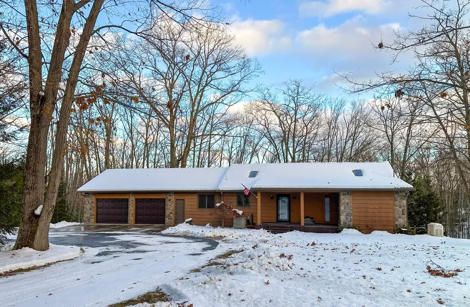 This year-round home sits on 45 beautiful acres with everything you could ever need and more! Paved circle driveway. 32 x 48 additional detached garage was just reskinned with new doors, windows and gutters. 30 x 24 attached 2 car garage has new garage doors and openers. A few other improvements include a new front entrance door, trex on the front porch, Generac generator, forced air furnace, A/C unit, gutters, and outside yard lights. This home offers 2 bedroom, 3 bath, 1,471 sqft, and a full finished walkout basement. Extremely spacious kitchen with new stainless steel appliances and hardwood flooring. Living room has beautiful tongue and groove walls, enhanced by recessed lighting, vaulted drywall ceilings, and a cozy country flame wood burning fireplace. Entering off the attached garage you'll find the convenient laundry room, guest bedroom and half bath. The 20 x 13 master suite has...
