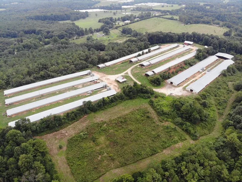 10 operating broiler houses ranging from 36 X 400 to 50 X 500 feet. The current owner has gone to great lengths to improve and replace anything needing repair or upgrade. Replacing cool-cells, fans, heaters, and other equipment that required improvements. Choretime feeders throughout, Ziggity nipple drinkers throughout, natural gas, city water, new baffles - this place is in good shape and ready for a new owner. We will need to work with the poultry company ahead of time to get the contract set up properly. This can be a great opportunity for someone that is willing to put in the effort. 4 houses are 36X400, 2 are 36X425, 2 are 36X500, 2 are 50X500
